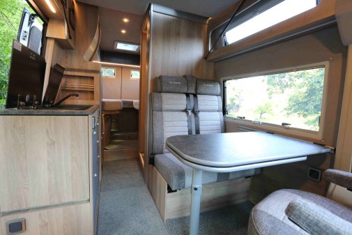 Avec le Mercedes, la gamme Regent a l’an passé accueilli le E, avec ces lits jumeaux convertibles en dînette arrière. Ce fourgon de de 5,93 m est venu en complément des très appréciés Regent EB (6,97 m/lits jumeaux) et S (5,93 m/lit transversal).