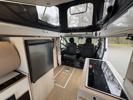 Pour autant, l’équipement reste conséquent puisque radar et caméra de recul, essuie-glace automatique, régulateur/limiteur de vitesse, réfrigérateur à compression de 80 l, WC, douchette extérieure, solide installation électrique (batterie Lithium 100Ah, convertisseur, panneau solaire 210w ), chauffage sur carburant ou encore store extérieur restent d’actualité, tout comme l’impressionnante réserve d’eau propre de 150 l qui a aussi fait beaucoup pour la réputation de la marque. Par ailleurs, ces ES sont livrés d’office en motorisation 150 ch. Au chapitre tarifs, ces deux modèles sont affichés 65 900 € pour le 2 places (qui peut être commander sans lit permanent arrière ou recevoir un siège route supplémentaire) et 68 200 € pour le 4 places.