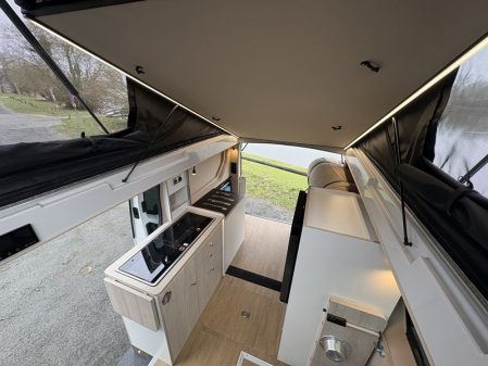 En ce début année, pour fêter les 35 ans de la marque, la gamme s’enrichit donc de deux nouvelles déclinaisons, les Edition Spéciale. Chacune repose sur un modèle V6, avec toit relevable à parois toiles et couchage supérieur, déjà connu. Le premier, l’ES 2 places, n’est autre que le Rangement Complémentaire. Quand au second, l’ES 4 places, il s’agit du Deux Lits. Mais ces deux nouveautés apportent leur lot d’évolutions avec une belle modularité en partie arrière.