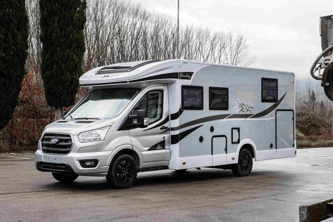 La marque du groupe Trigano a choisi une cabine grise pour ces deux nouveaux profilés. Une manière de donner une allure plus haut de gamme à ses véhicules. La cellule est blanche et reprend les stickers des chevaux de la série Yearling. Du côté du porteur, elle s’appuie sur un Ford Transit doté d’une boîte automatique et d’un moteur de 165 ch de série. Le châssis est homologué avec un PTAC de 4,1 tonnes (mais détaré à 3500 kg pour être conduit, actuellement, avec le permis B) et des systèmes de sécurité avancés (ADAS) afin d’optimiser la sécurité et le confort de conduite.