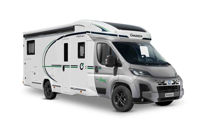 Parmi les autres nouveautés, on retrouve un pack accessoires avec de série : un auvent, un panneau solaire, une moustiquaire de porte, un store intérieur cabine et une la batterie lithium. De série, le porteur est équipé du pack Look qui inclut un volant en cuir, des jantes alliage 16 pouces, une caméra de recul, des commandes au volant… Avec sa salle de bain traversante et ses quatre couchages, le profilé 798 Sweet Line est commercialisé à 75 990 €.
