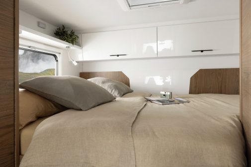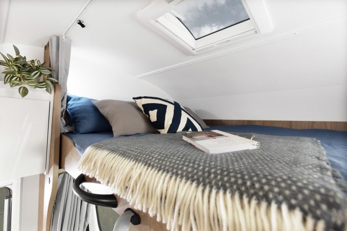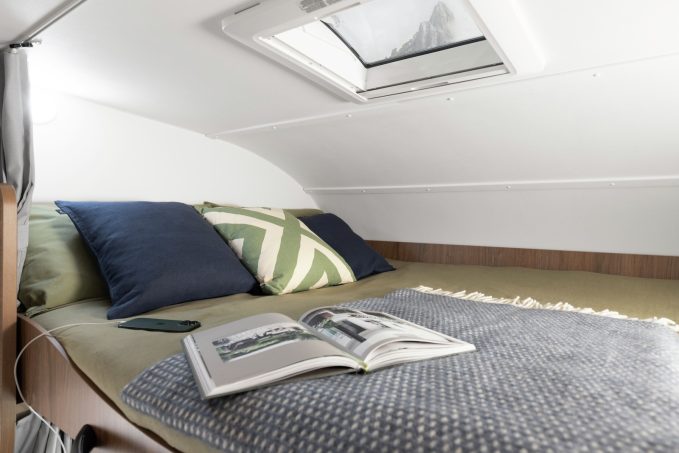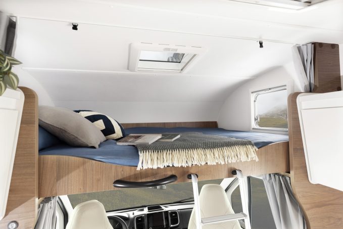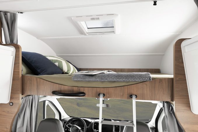 À l’intérieur, l’espace est optimisé. Le point fort réside sans surprise dans la capucine qui abrite un lit double avec un matelas de 159 x 211 cm.