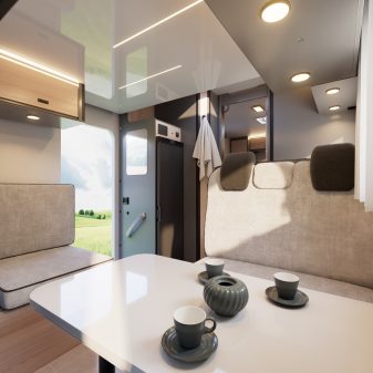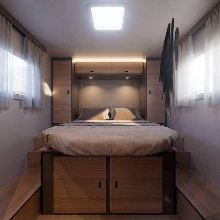 Sans oublier la vie à bord, avec le choix d'origine pour la marque de loger un lit de pavillon électrique double. Il vient en complément du couchage principal. Sur ce registre d'ailleurs, l’agencement intérieur mise un lit central, une valeur sûre du marché français. La chambre est associée à une salle d'eau en deux parties (douche indépendante des WC), garantissant une intimité réelle. Homologué 5 places carte grise, cette édition limitée couvre ainsi une vaste demande allant d'un usage en couple à celui d'une famille.