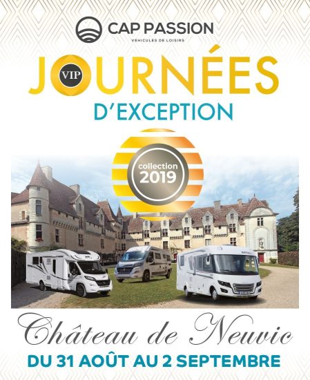 Fort de 3 concessions dans le sud-ouest de la France, Cap Passion commercialise des camping-cars depuis près de 20 ans. Et pour lancer la collection 2019 des véhicules de loisirs, Cap Passion organise une grande exposition-vente au château de Neuvic. Sur le site qui se trouve à quelques kilomètres de Périgueux, vous pourrez voir en avant-première nombre de nouveaux camping-cars, ainsi qu’une sélection de véhicules d’occasion. Des porteurs Ford et Fiat seront également à l’essai pour vous aider à choisir la motorisation qui vous correspond.