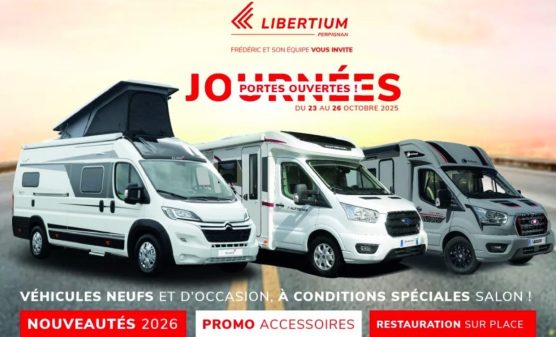 Sous le soleil catalan, l'équipe Libertium présentera sa sélection de véhicules : nouveautés 2026, fins de série, occasions... Parmi marques présentes, retrouvez : Autostar, Benimar, Bürstner, Challenger, Eden Camp, Elios, Euramobil, Font Vendôme, Mc Louis, Panama, Pössl, Rimor et Westfalia.