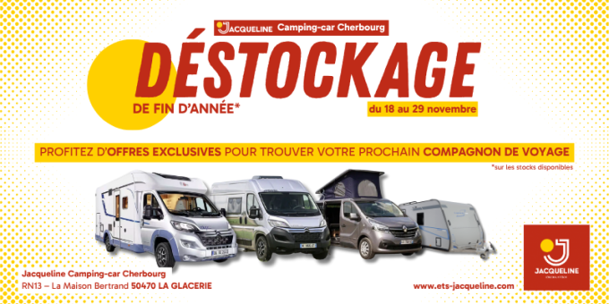 Grand déstockage de fin d’année chez Jacqueline Camping-car de Cherbourg du 18 au 29 novembre 2025