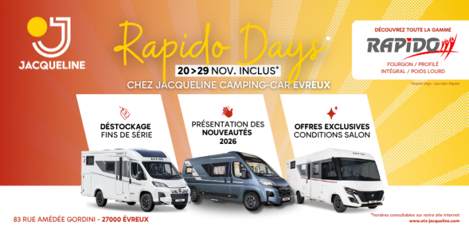 Les Rapido Days arrivent à Jacqueline Camping-car Évreux du 20 au 29 novembre 2025