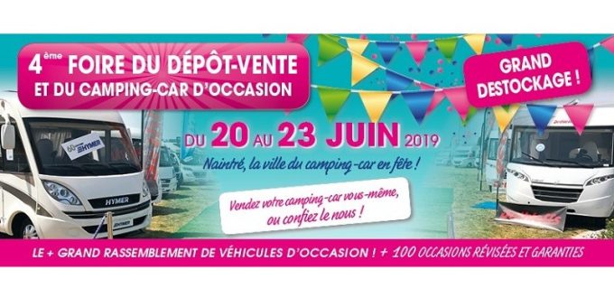 Lancement des festivités ! La 4ème édition de la Foire du Dépôt-Vente et du Camping-car d’occasion se déroulera du jeudi 20 Juin au Dimanche 23 Juin 2019, sur le Parc de Vienne Évasion, au cœur du pôle régional Loisirs, à Naintré de 9h à 19h sans interruption.