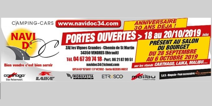 Déjà 30 ans d'existence pour votre concessionnaire NAVID'OC, qui vous invite à ses Portes Ouvertes du 18 au 20 Octobre 2019 inclus.