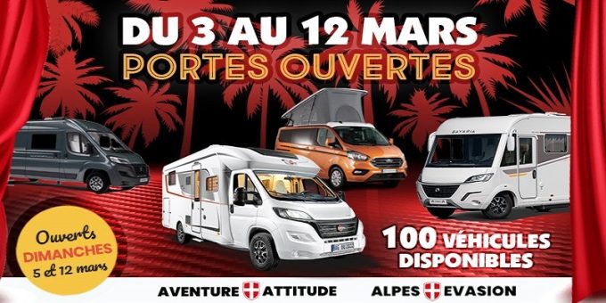 Les Portes Ouvertes chez Alpes Evasion et Aventure Attitude, c'est le rendez-vous à ne pas manquer ! Du 3 au 12 mars, 100 camping-cars, fourgons et vans sont prêts à partir !