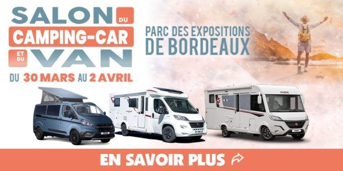 Le Salon du camping-car et du van de Bordeaux aura lieu du 30 mars au 2 avrils 2023 au Parc des Expositions de Bordeaux. Une Exposition-vente de 250 camping-cars neufs et d’occasion