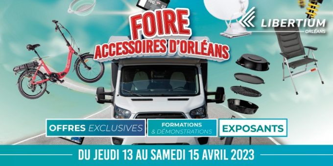 La Foire Accessoires Libertium Orléans de camping-cars, fourgons, vans et caravanes se déroulera du jeudi 13 au samedi 15 avril 2023. Foire 100% dédiée aux accessoires et équipements pour véhicules de loisirs.