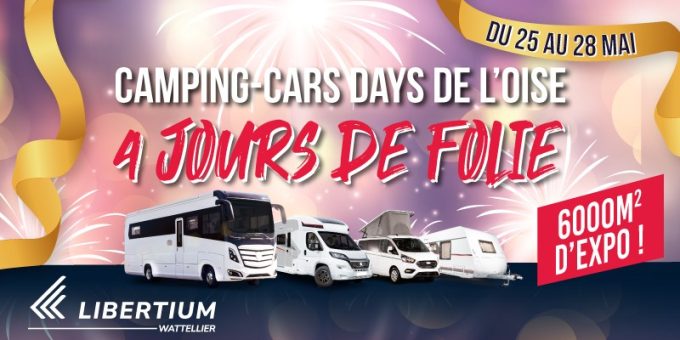 Retrouvez les CAMPING-CARS DAYS DE L'OISE, 8ème Edition "Edition de printemps" du jeudi 25 au dimanche 28 mai 2023, c'est 4 jours de folie chez Libertium Wattellier (60 Rantigny) !