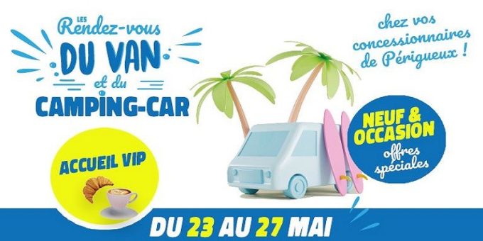 Du 23 au 27 mai 2023, vous avez un rendez-vous VIP pour découvrir votre prochain compagnon de voyage ! Camping-Cars, vans et fourgons, neufs et d'occasion : les plus grandes marques et un grand choix de modèles. Des offres spéciales et un petit-déjeuner vous attendent chez Cap Passion 24, Passion Camping-Car, Pautard Loisirs et Sabadin Loisirs !