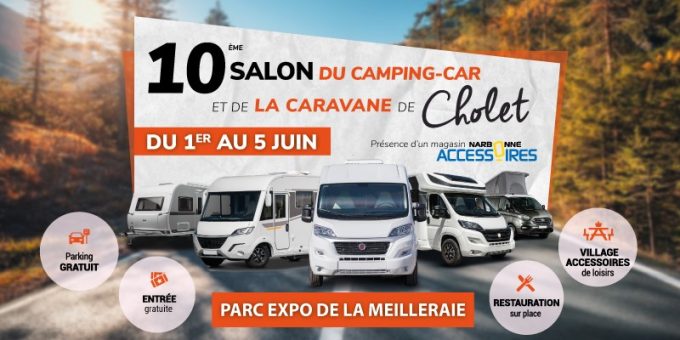 Du 01 au 05 juin 2023, nous vous donnons rendez-vous à la 10ème édition du Salon de Cholet, au Parc des Expositions de la Meilleraie, de 10h à 19h. Durant ces 5 jours, découvrez une large gamme de véhicules de loisirs neufs et d’occasion de la région des Pays-de-la-Loire.