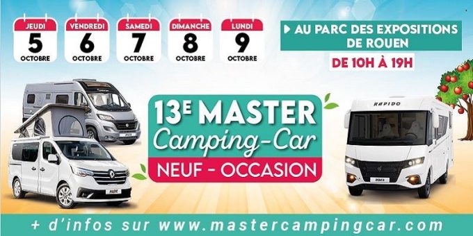 Dans le cadre du Parc-expo de Rouen, situé au Grand-Quevilly, le Master camping-car Fourgon et van de Rouen aura lieu du jeudi 5 au lundi 9 octobre 2023 et présentera les modèles neufs et ceux d’occasion des plus grandes marques de camping-cars distribuées en France.