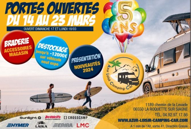 Azur Loisir Camping-car organise des portes ouvertes à l'occasion de ses 5 ans .