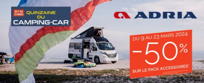 vous bénéficierez d’une remise exceptionnelle de -50% SUR L’ENSEMBLE DES PACKS ACCESSOIRES ADRIA. (Remise allant jusqu’à -3250€ TTC, hors modèles Active disposant déjà d’une promotion spécifique).