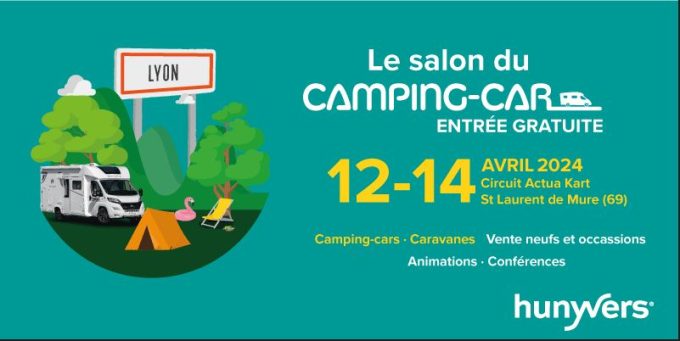 Rendez-vous au Salon du camping-car de Lyon - Hunyvers du vendredi 12 avril au dimanche 14 avril 2024 inclus de 10h à 19h au circuit ACTUA de Lyon.