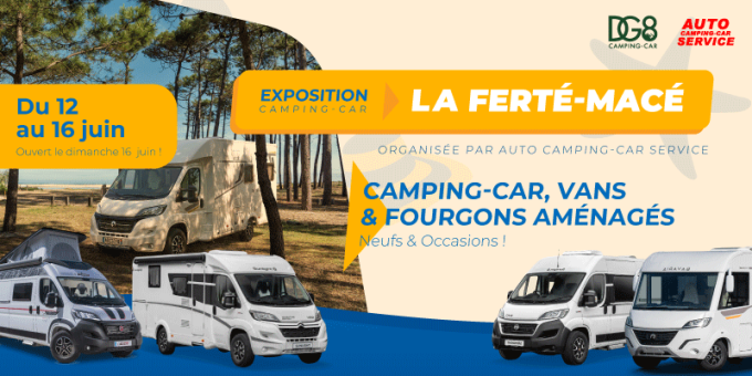 Rendez-vous à la base nautique de la Ferté-Macé pour l'exposition vente de camping-cars, vans et fourgons aménagés, organisée par Auto-Camping-Car Service, Groupe DG8 Camping-car du 12 au 16 juin 2024.