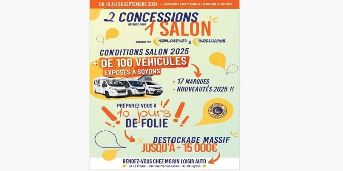 Morin Loisir Auto et Valence Caravane se réunissent pour un Salon du 19 au 28 septembre 2024