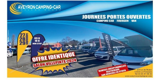 Retrouvez les journées Portes Ouvertes Camping-car, Fourgon et Van chez le concessionnaire Aveyron Camping-car du vendredi 27 septembre au Dimanche 29 septembre 2024.