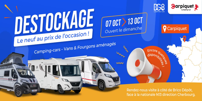 Retrouvez le grand déstockage de véhicules de loisirs chez Carpiquet du 7 au 13 octobre 2024, le neuf au prix de l'occasion !