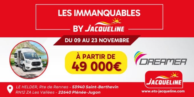 Retrouvez les Immanquables Dreamer du 9 au 23 novembre 2024. Déstockage chez Jacqueline Camping-car à Laval et Plénée-Jugon !