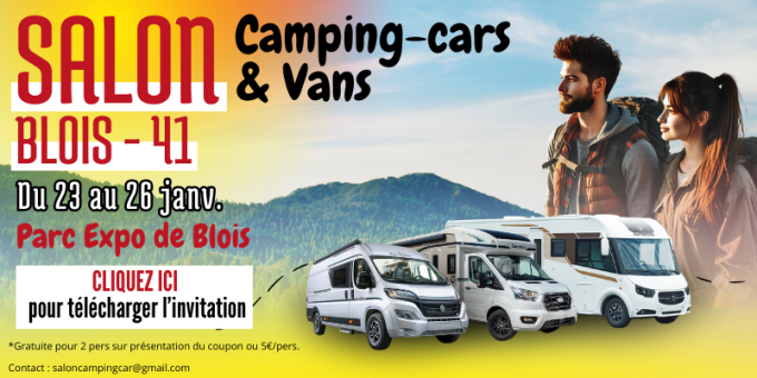 Retrouvez le 1er Salon du Camping-Car & du Van à Blois (41) du 23 au 26 janvier 2025 au Parc Expo de Blois.