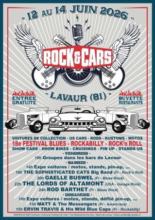 Lavaur - Au programme de cette 18e édition, on retrouve The Lords of Altamont, Rod Barthet, Gaelle Buswel… Autour de voitures de collection, US cars, Rods, customs et des motos de légende, dans une ambiance musicale blues, rockabilly et rock. Gratuit. Petite aire d’accueil (3 places).