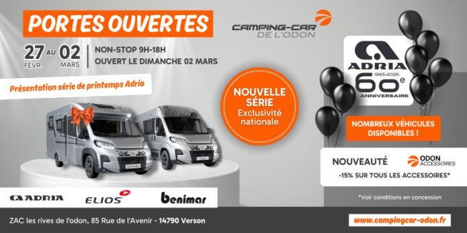 Retrouvez les Portes ouvertes chez Camping-Car de l’Odon du 27 février au 2 mars 2025.