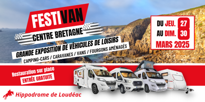 Retrouvez le Salon de Loudéac – Festi Van Centre Bretagne du jeudi 27 au dimanche 30 mars 2025, à l’hippodrome de Calouet, à Loudéac.