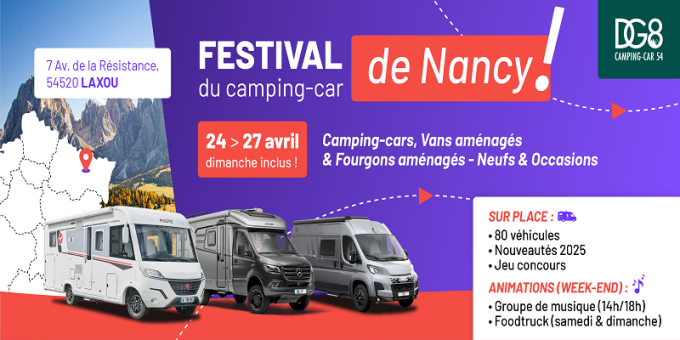 Rendez-vous du 24 au 27 avril 2025 au Festival du Camping-Car de Nancy chez DG8 !