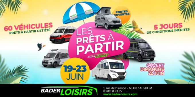 Rendez-vous pour les Portes Ouvertes "Les Prêts à partir" chez BADER LOISIRS du 19 au 23 juin 2025 à Sausheim.