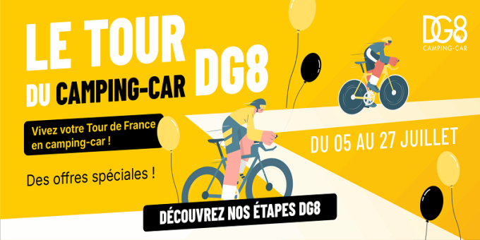 Du 5 au 27 juillet 2025, les coureurs traversent la France – et passent tout près de nombreuses concessions DG8 Camping-Car !