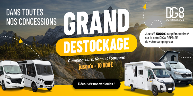 Retrouvez un Grand Déstockage DG8 Camping-Car jusqu’au 31/08/2025.
