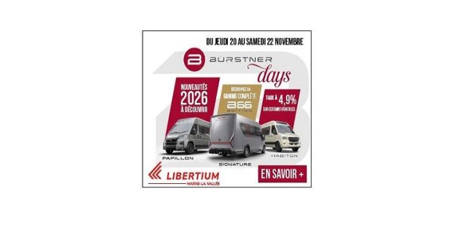Retrouvez les Jours Bürstner chez Libertium Marne-la-vallée du 20 au 22 novembre 2025.