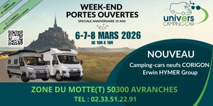 Retrouvez les Portes Ouvertes chez Univers Camping-car les 6, 7 et 8 mars 2026.