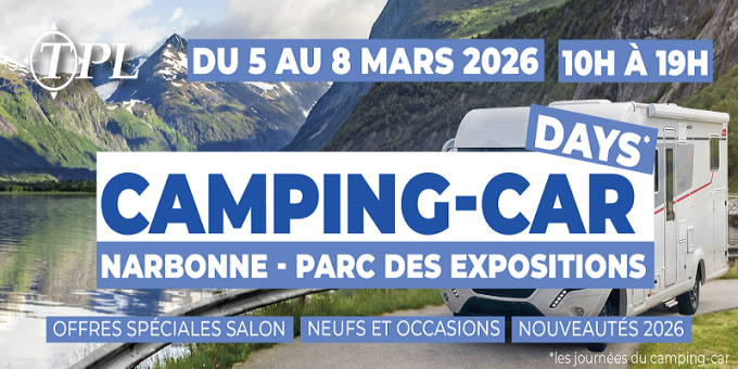 Retrouvez les Camping-Car Days de Narbonne du jeudi 05 au dimanche 08 Mars 2026 au Parc des expositions de Narbonne.