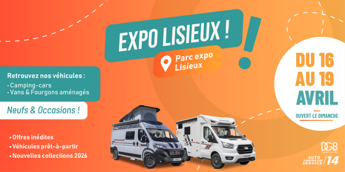 Rendez-vous du 16 au 19 avril 2026 à la Foire Expo Camping-car au Parc des Expositions de Lisieux.