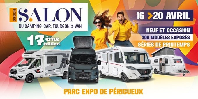 Du 16 au 20 avril 2026, camping-cars, vans, fourgons, caravanes : plus de 300 modèles sont présentés au Parc des Expositions du Périgord. Séries suréquipées du printemps, nouveautés 2026, occasions révisées et garanties : des conditions spéciales "SALON" sont réservées aux visiteurs.