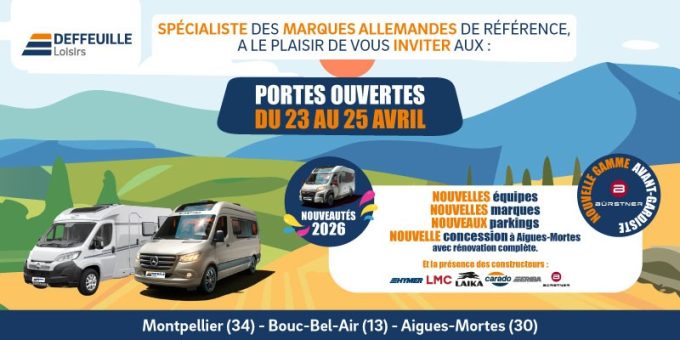 Retrouvez leurs Journées Portes Ouvertes du 23 au 25 avril 2026 dans les 3 concessions Deffeuille Loisirs.