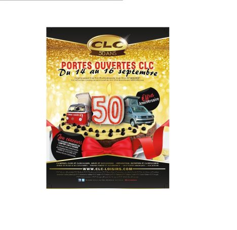 Du 14 au 16 septembre, à l'occasion des 50ans du groupement CLC, venez profiter des offres "anniversaire" pendant leurs portes ouvertes Un jeu concours est organisé avec des voyages en camping car à gagner. Plus d'informations sur www.clc-loisirs.com