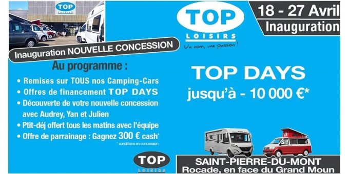 Du 18 au 27 Avril, l'équipe de TOP LOISIRS inaugure sa nouvelle concession !
