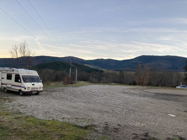 Grande place en gravier pour se garer, cadre sympathique. Très ensoleillé le matin, manque d’ombre. Prévoir de partir tôt.