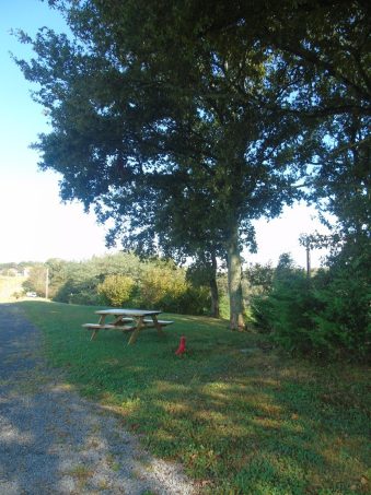 Aire adaptée pour les grands camping cars. Tables et bancs de pique nique à disposition.