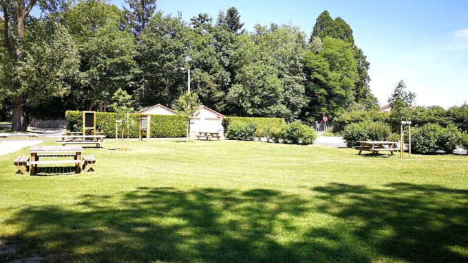Aire située sur la voie verte "Via Fluvia" à 150 mètres du centre bourg du village (tous commerces) et à proximité de la base de loisirs (5 km) A voir: son église, l'ascension de son clocher et son pendule de Foucault.