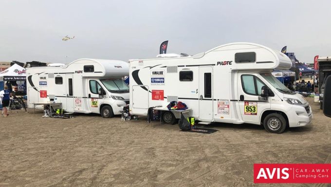 Et pour cela, l’équipe est soutenue par le groupe Pilote ! En effet, le constructeur de camping-car, conjointement avec l’agence de location de véhicules de loisirs Avis Car-Away, offrent « toute la praticité et le confort indispensable pour accueillir les pilotes dans les meilleures dispositions et leur fournir le repos indispensable dans une cours si éprouvante », ont-ils déclaré dans un communiqué. Pour cela, l’équipe Yamaha est équipée de « trois véhicules du groupe Pilote : deux capucines Pilote C700 et un Trek 42 de Hanroad ».