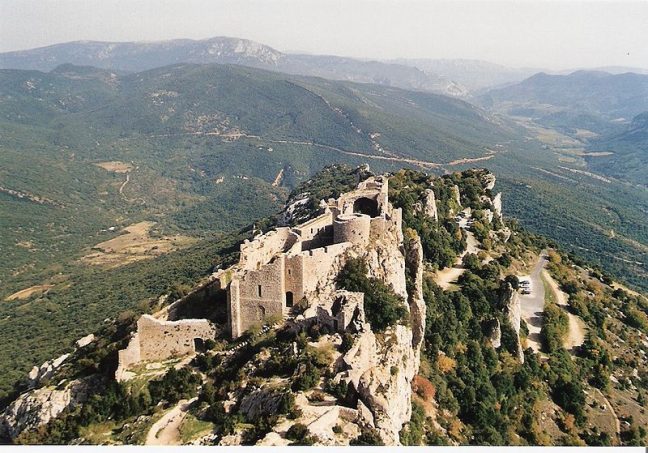 A Duilhac, le château de Peyrepertuse (800 mètres d’altitude) est la plus grande forteresse médiévale de l’Aude après Carcassonne. Bâtie au dixième siècle, on la nomme d’ailleurs «la Carcassonne céleste» du fait de ses hautes murailles confondues avec la roche. Le long des falaises vertigineuses, certains pratiquent l’escalade. Trois enceintes enserrent les bâtiments en ruines, témoins de la puissance passée des rois cathares. Du haut de cette citadelle, on a une belle vue panoramique sur les vignobles. Et on peut également assister au spectacle des fauconniers du château (en juillet et août).