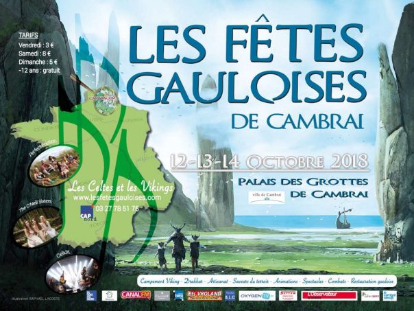 La commune de Cambrai organise cet automne la 2e édition des fêtes Gauloises. Cette année, le thème sera « les Celtes et les Vikings ». L’événement se tiendra du 12 au 14 octobre au palais des Grottes. A cette occasion, des concerts seront donnés mais aussi des spectacles, des démonstrations d’artisanat et de combat. Vous trouverez également un marché de saveurs du terroir ainsi qu’une restauration gauloise.
